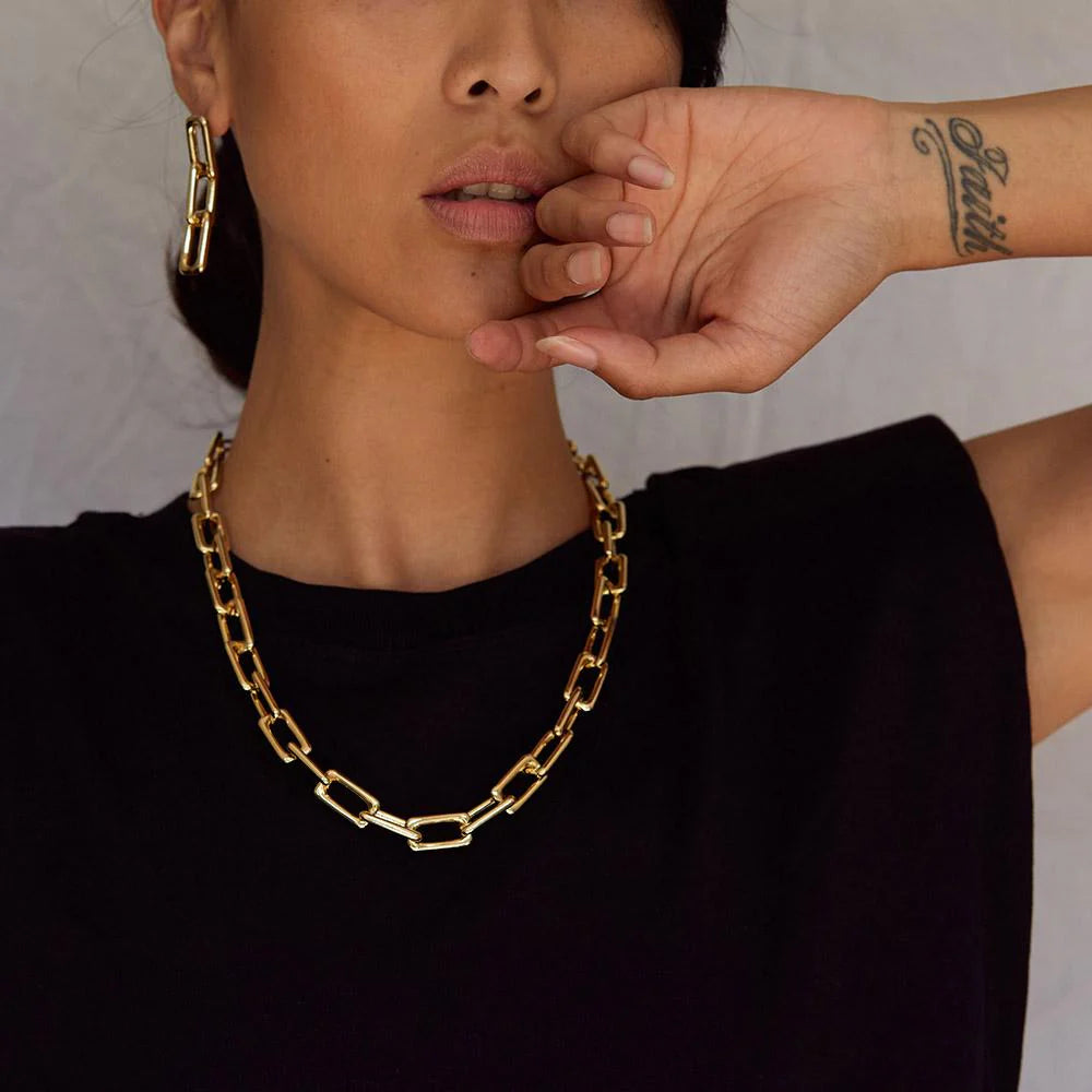 The Jae Chain Link Necklace is fashion statement chain necklace. Perfect for a night out or wear layered to create a more dramatic look.