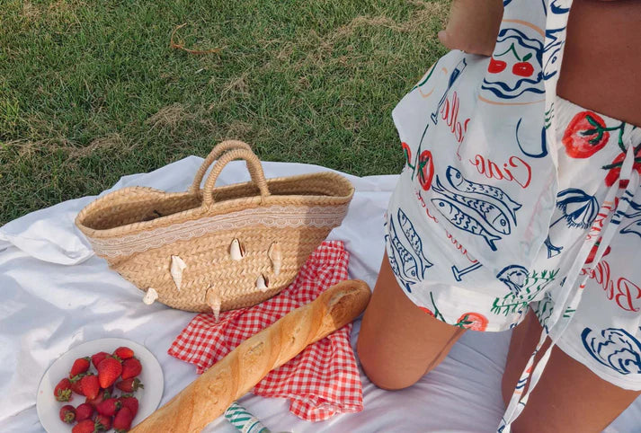 Shirt and short conversational print two piece set in 100% Cotton. Hand Sketched and painted exclusive print.