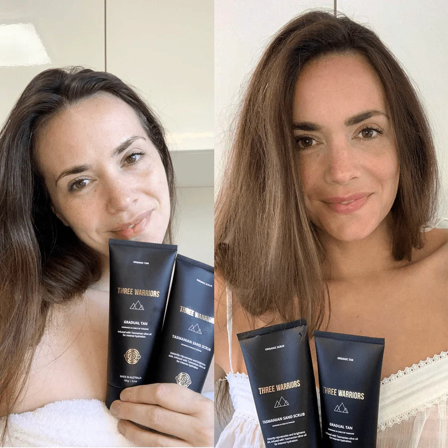 Achieve a flawless, sun-kissed glow with Three Warriors' Gradual Tan, a premium self-tanning moisturiser designed to deliver a natural golden look while nourishing your skin. Crafted with certified organic ingredients, this hydrating and multi-award-winning formula allows you to build your desired shade gradually, ensuring an even finish.